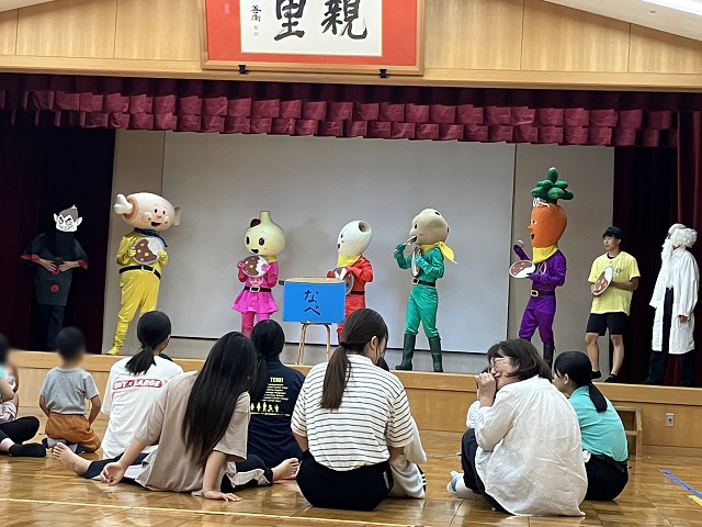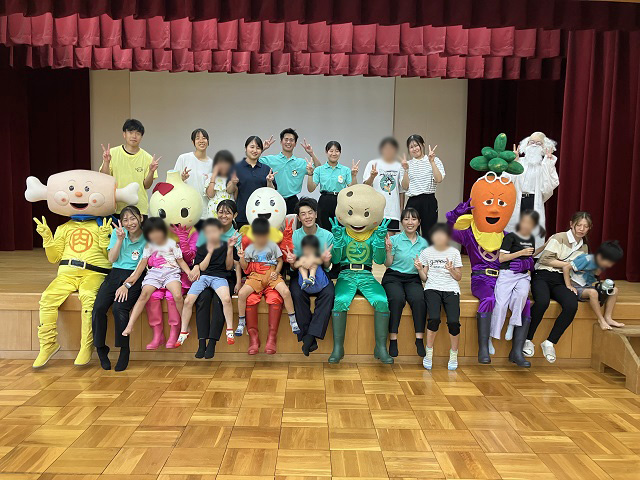 専修科のみなさん楽しかったよ! 13(日)、天理教校専修科“縦の伝道班”のお兄さん、お姉さんが来院され、講堂で子ども会を開催してくださいました。ハンドダンスや歌に始まり、一緒にゲームを楽しんだり、カレーファイブショーを堪能しました。カレーファイブショーでは、生きる上で大切なことを楽しく分かりやすく教えていただきました。専修科生のみなさん、楽しい時間を設けていただき、どうもありがとうございました!!