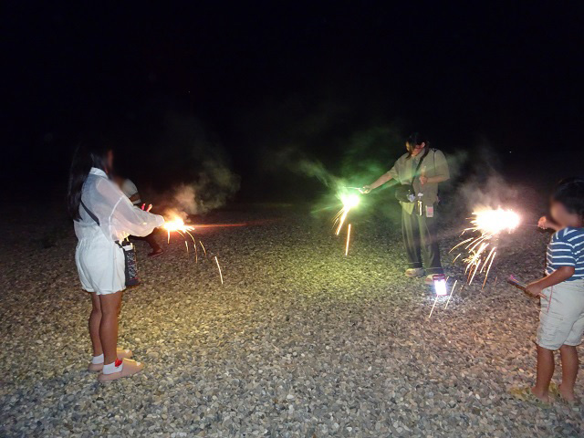臨海訓練に参加してきました! 7/21(月)~23(水)の3日間、三重県の千鳥ヶ浜海水浴場で、奈良県児童福祉施設連盟主催の臨海訓練が行われ、今年は、児童19名、職員10名で参加してきました。3日間とも見事な快晴のご守護を頂き、波に揺られながらみんな思う存分に海を満喫することができました。また、漁港で花火をしたり、旅館では海の幸のご馳走をいただいて、海のない奈良県ではできない数々の貴重な体験をすることができました。素敵な思い出ができました☆