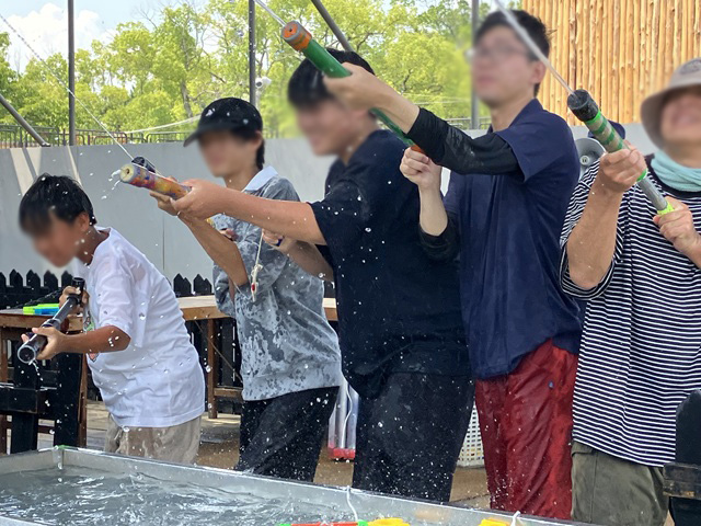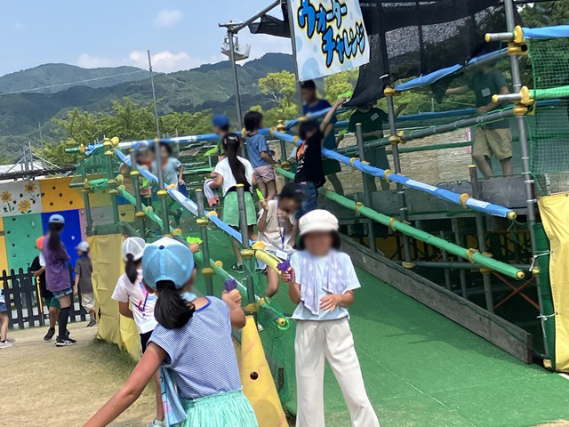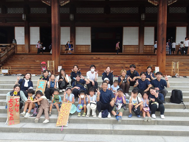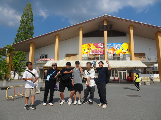 8/1(金)、おやさと団天理養徳隊としてこどもおぢばがえりに参加してきました。子どもたちは、「チャレンジパーク」「アスレチックBOX」「決戦!忍者村」などのアトラクションを大いに楽しみました。昼食は、おぢば名物の「カレー食堂」!そして大人気行事、笑いと感動の「バラエティ188」など盛りだくさんの内容で、快晴の御守護も頂きみんなとても元気に参加することができました。将来は皆さんも、ひのきしんをしていた方達の様な、たくさんの子どもを笑顔にできるお兄さん・お姉さんになって下さいね☆☆また、こどもおぢばがえりに、少年ひのきしん隊として7名、少年ひのきしん隊の子どもたちをサポートする学生ひのきしんに2名の子どもたちが参加しました。日本全国からおぢばに帰ってきた皆さんのためにお茶を振舞ったり、ステージに出て観客を楽しませたりと、暑い中一生懸命がんばっている姿がピカピカに輝いてました!!