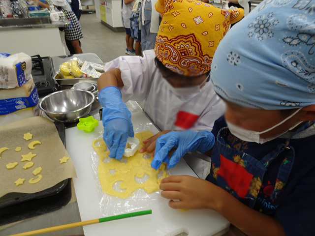 お料理って何するの? 8/22(金)、奈良県児童福祉施設連盟主催の調理実習が行われ、小学校低学年の児童4名がクッキーやパフェ、サンドイッチ作りと、お茶の飲み比べに挑戦してきました。4人とも見よう見マネしながら積極的に楽しんで取り組んでいました☆