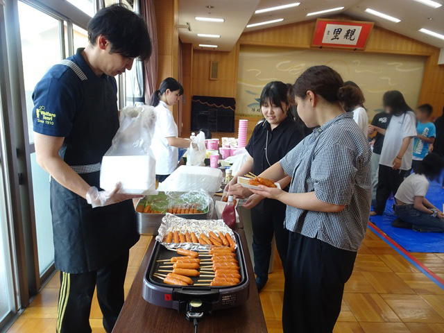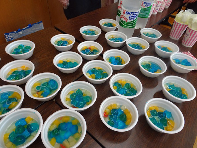 新学期もがんばってこう! 8/30(土)、新学期開始を前に講堂にて、職員と子どもたちとで交流行事を行いました。職員が準備スタッフを務め、焼きそばやフランクフルト、フルーツポンチ、ゲームとして”ビンゴ大会を用意しました。行事は、おかげさまで飲食しながらの会話で盛り上がり、ビンゴゲームの結果で盛り上がり、夏休み最後にとても楽しいひと時を過ごすことができました。この雰囲気を大切にして、新学期もみんなで乗り切っていきたいと思います。