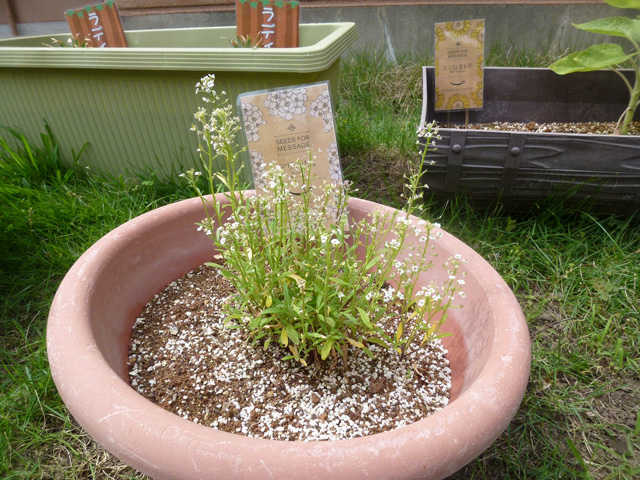 菜園活動報告 Part7 3月の終わりに種植えしたお花たちが、少しずつ成長してきました。水やりも頑張って、アリッサムが一足早く咲きました。また、イタリアンパセリを収穫し、料理のトッピングに使いました。見た目も華やかになりましたね☆ Part1はコチラ ☚ Click