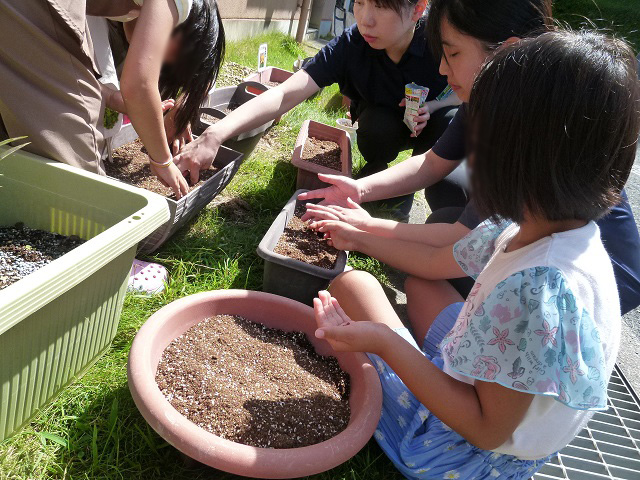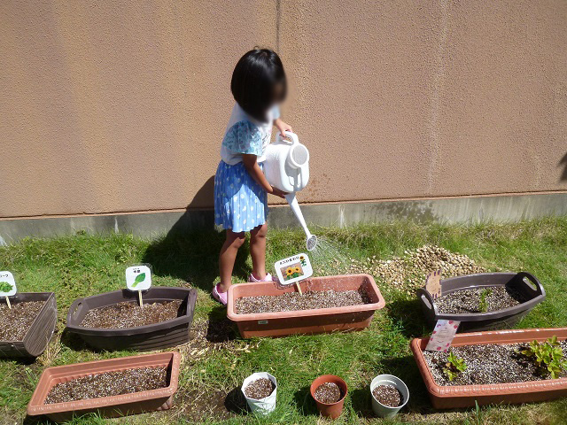 菜園活動報告 Part8 27(日)、菜園活動として、「万能ねぎ」、「ベビーリーフ」、「水菜」、「ミニひまわり」の種まきを行いました。夏の陽ざしを存分に浴びて大きく成長してネ☆ Part1はコチラ ☚ Click